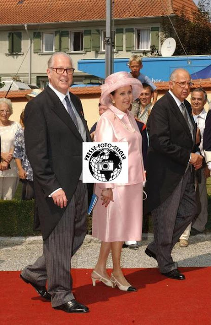 Duke Alexander, Duchess Sophie, and Duke Eugen attend the wedding of Duchess Fleur, 2003. Photograph (c) Seeger-Presse / Sandra Zellner.
