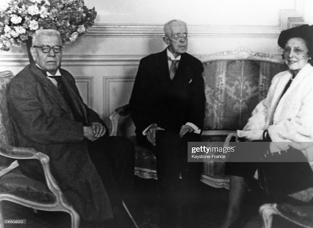 | Prince Louis II of Monaco, King Gustav V of Sweden, and Princess Ghislaine of Monaco in 1947. Photo (c) Getty Images / Keystone-France. |