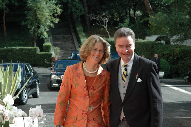 On 18 October 1997 at Budapest, Duchess Eilika of Oldenburg married Archduke Georg of Austria (b.1964), the youngest child and second son of Archduke Otto of Austria and Archduchess Regina (née Princess of Saxe-Meiningen). In addition to the Habsburg and Oldenburg families, their wedding was attended by King Felipe VI of Spain (then Prince of Asturias) and Prince Albert II of Monaco (then Hereditary Prince of Monaco). Through their respective mothers, Duchess Eilika and Archduke Georg are fifth half cousins once removed; they are both descendants of Kurfürst Wilhelm II of Hessen (1777-1847), with Georg descending from Wilhelm and his first wife Princess Auguste of Prussia (1780-1841) and with Eilika descending from Wilhelm and his second wife Emilie Ortlöpp, Countess von Reichenbach und Lessonitz (1791-1843).