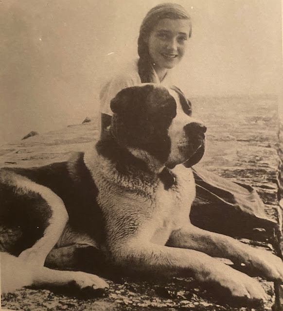 Princess Laure with her dog on the shores of Lake Geneva.