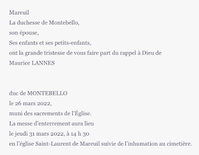 Maurice Lannes, 7. duc de Montebello, died on 26 March 2022 at Mareuil, France. He was eighty-two years-old.