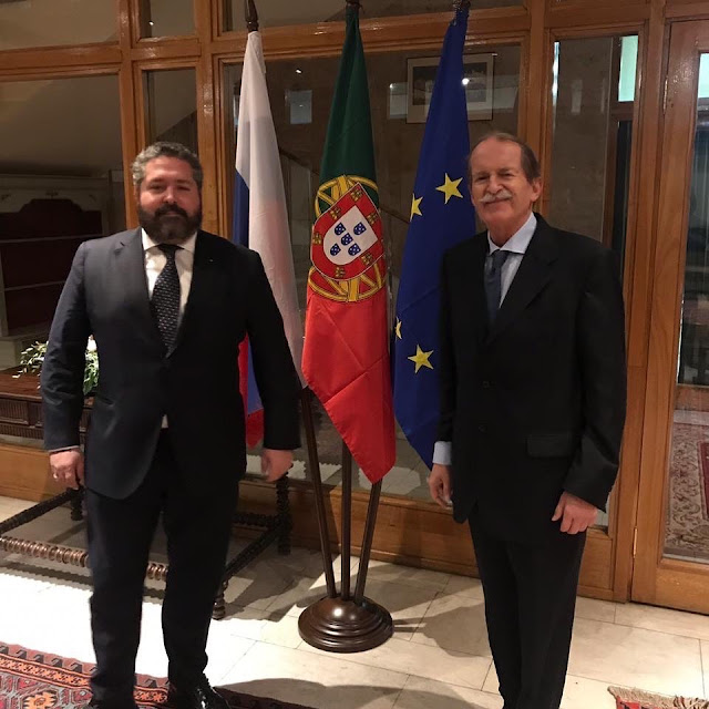 The Duke of Braganza, Head of the Royal House of Portugal, and Grand Duke George of Russia, the Heir to the Head of the Imperial House of Russia, met today in Moscow. They spent time both at the Portuguese Embassy to Russia in Moscow and later at dinner. The modern Braganzas and Romanovs have strong ties: D. Duarte, Duke of Braganza, and Grand Duchess Maria of Russia are good friends.